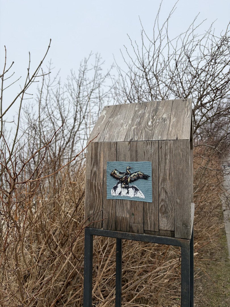 На столбах и стенах заброшек в Калининградской области появились вышитые картинки