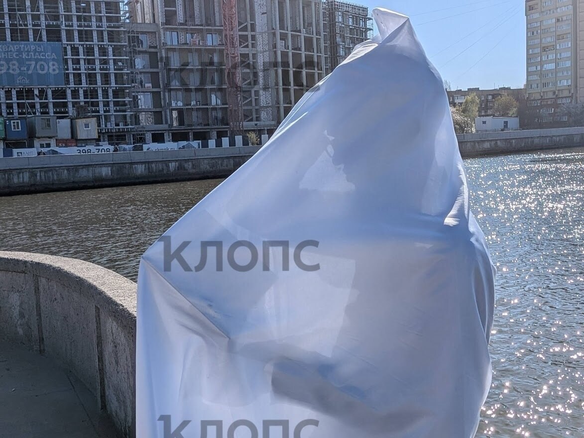 На Южной набережной неподалёку от Философского моста уже можно увидеть сидящую на парапете фигуру в человеческий рост, укутанную белой тканью. На ярком солнце сквозь материю просвечивает силуэт с книжкой в руках и очками на носу. Прохожие и рыбаки с интересом останавливаются, пытаясь рассмотреть «читателя».