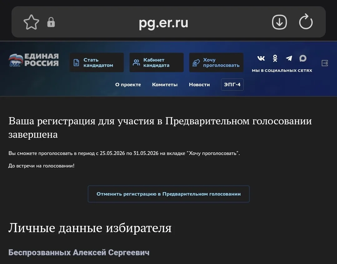 Само предварительное голосование пройдёт с 25 по 31 мая. Списки кандидатов-победителей по итогам процедуры утвердит Съезд. Рекомендую этой возможностью воспользоваться. К слову, она есть только у «Единой России».