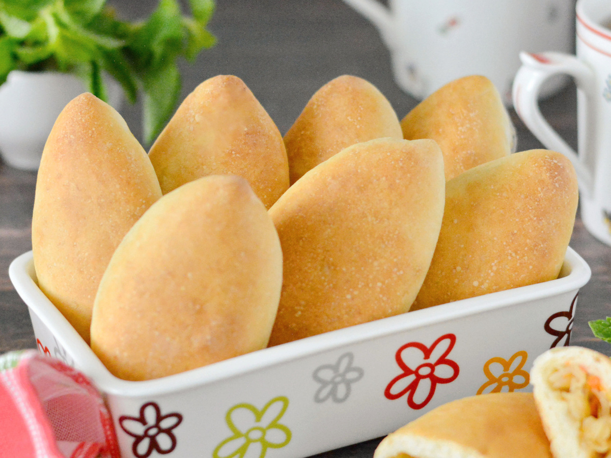 Для начинки: 1 кг капусты, 100 г лука и 100 г моркови. Начинать следует с растворения дрожжей в теплой воде, после чего можно перейти к смешиванию всех остальных ингредиентов. Тесто должно стать мягким и эластичным, затем его оставляют на несколько часов, периодически обминая. Начинку готовят на сковороде, обжаривая овощи и добавляя капусту.