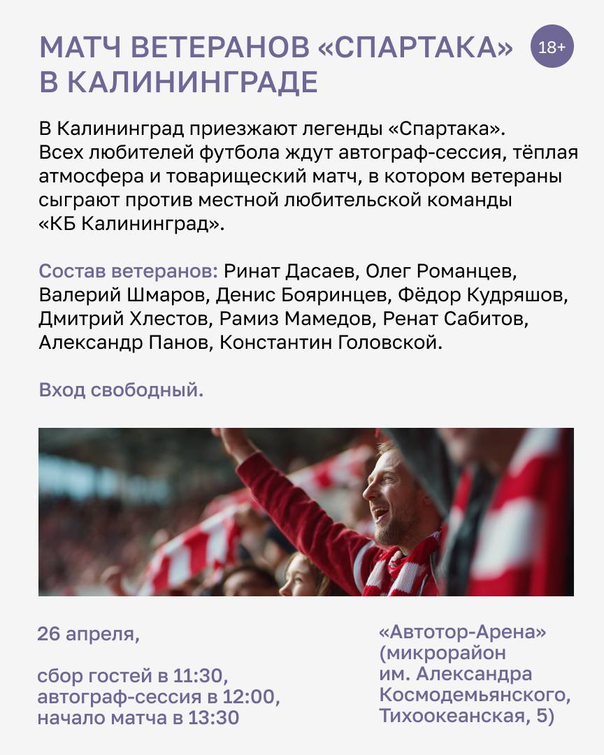 Жителей и гостей Калининграда приглашают посмотреть спектакль, нарисовать герб семьи и познакомиться с ветеранами «Спартака».
