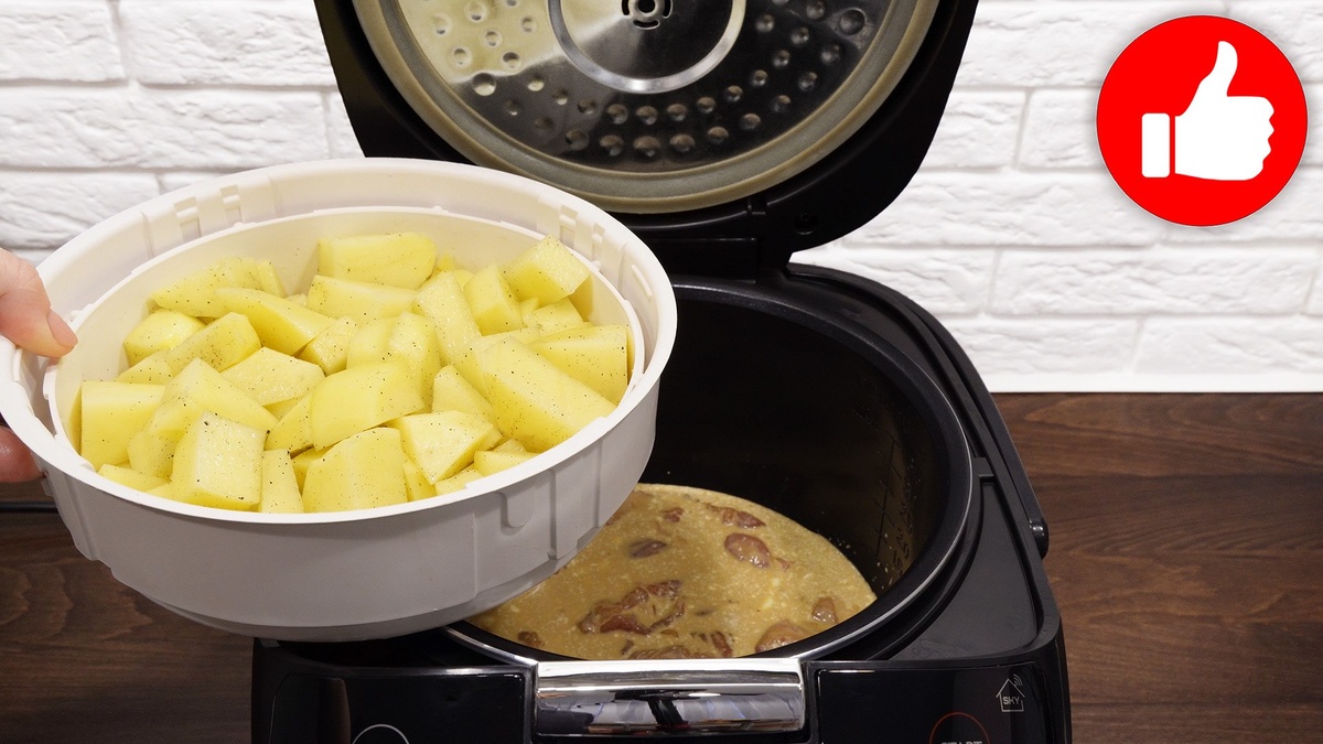 Выбор режима приготовления зависит от предпочтений: можно использовать режим «Тушение» на 60 минут или «Мультиповар» при температуре 110°C на 50 минут. Простой процесс гарантирует идеальный результат: курица получится сочной, а картошка — мягкой и ароматной.
