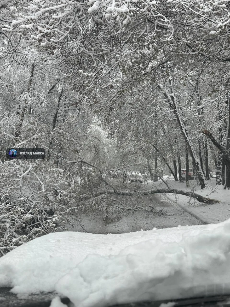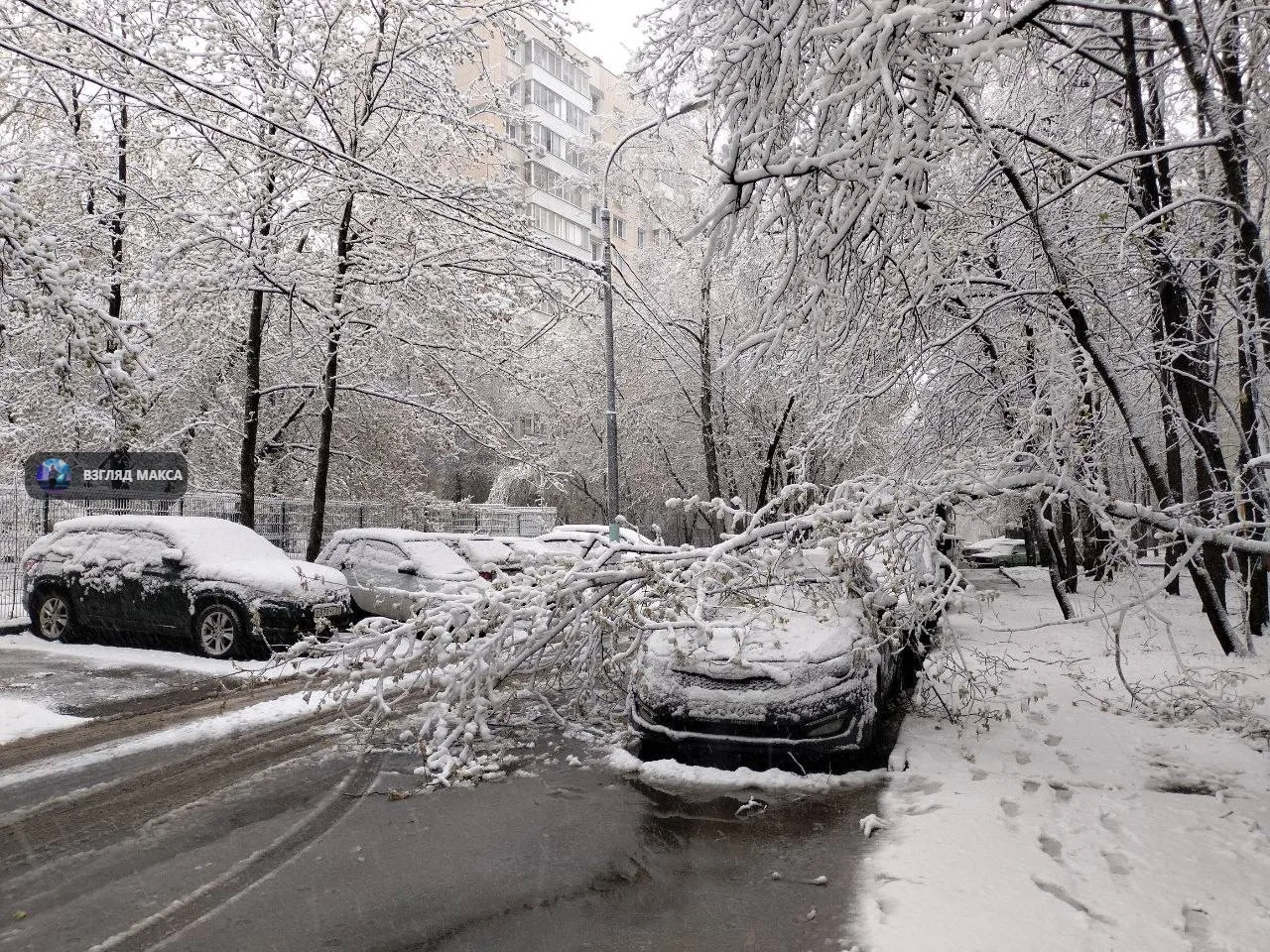 Тяжёлый мокрый снег налипает на провода и кроны деревьев, ломая ветки. Коммунальные службы фиксируют десятки случаев падения деревьев по всему городу. Одно из них рухнуло прямо на пути Арбатско-Покровской линии метро — движение между станциями «Партизанская» и «Щёлковская» пришлось останавливать, интервалы на всей синей ветке временно увеличились. Позже столичный Дептранс сообщил о восстановлении графика.