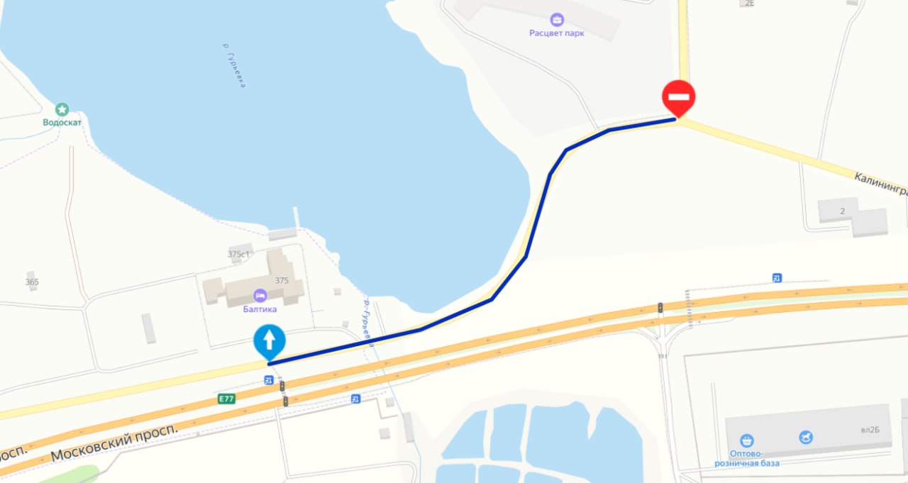 Речь идёт об участке в районе мотеля «Балтика». С 4 мая по 17 ноября там введут одностороннее движение. Ехать можно будет со стороны центра города в направлении посёлка Заозерье. Объезд — через Калининградскую улицу, одноимённое шоссе и Московский проспект.
